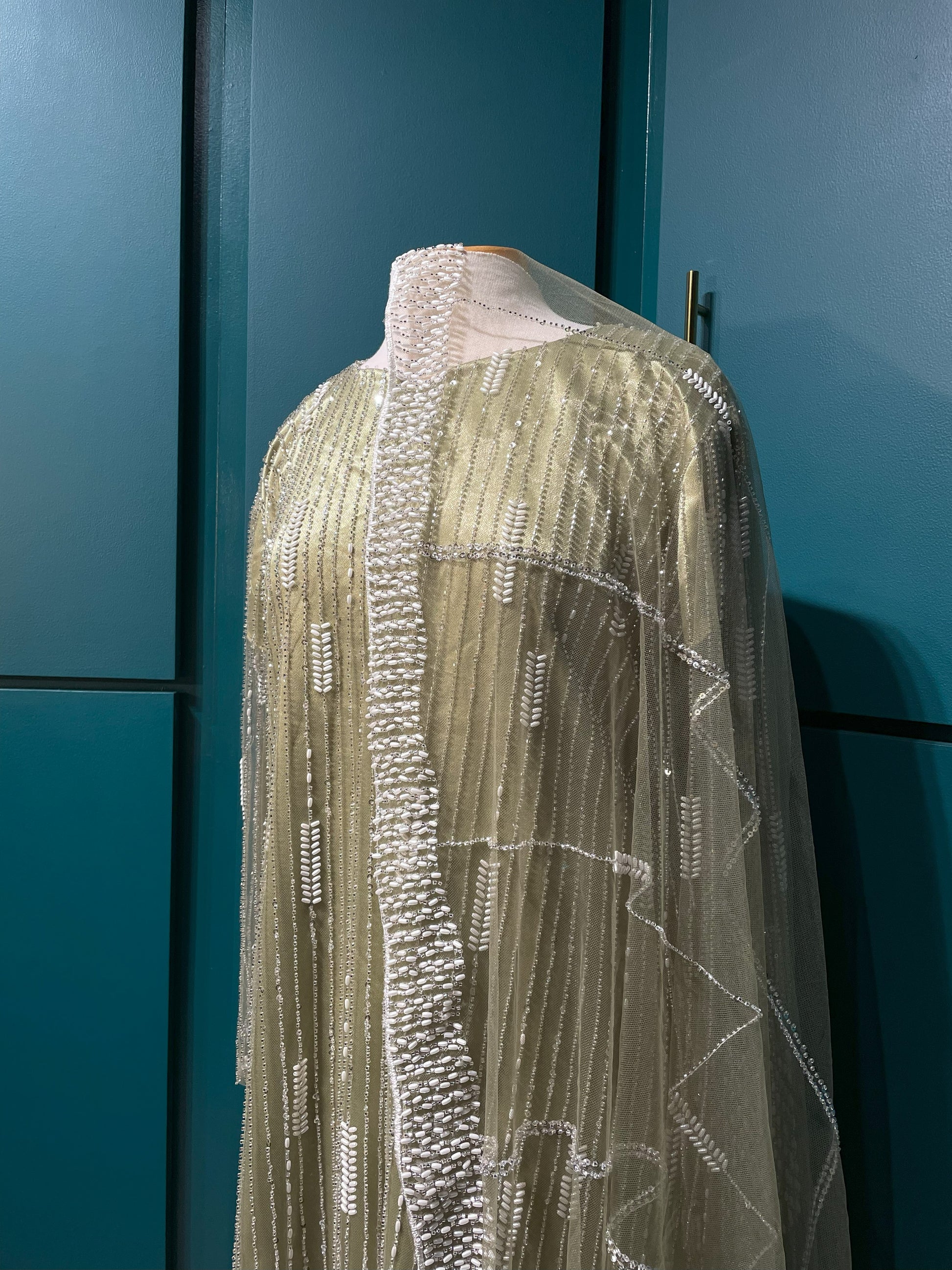 Light Green Wedding Wear Kurti, with Dupatta and Palazzo Pants.